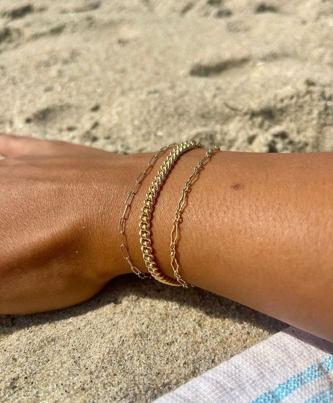 Whether you are looking for a dainty minimalistic chain, or a thick statement piece, Forever Golden’s array of over 50 chain options provide a little something special for everyone! We offer a selection of 14 Karat Gold-Filled and Sterling Silver Chains, made to withstand daily wear. Forever Golden Permanent Bracelets were designed to be stacked, add a new piece to your wrist each time you visit us at our store in Brielle, NJ to create the ultimate Forever Golden Bracelet Stack.